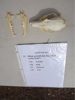 Did you guess "coyote?" WRONG!!! That is a fox! It is too small to be a coyote and a possum has a few smaller teeth in front before the sharp teeth seen in this picture (Sorry I don't have technical names for these teeth. More to learn for next year!).