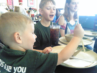 We also had a food experience that I thought I should share. The boys immediately recognized our trip to Tokyo House (a hibachi grill) as a Food & Nutrition experience. We talked with the chef as he prepared our food and used chopsticks to eat the delicious meal. A great time was had by all!